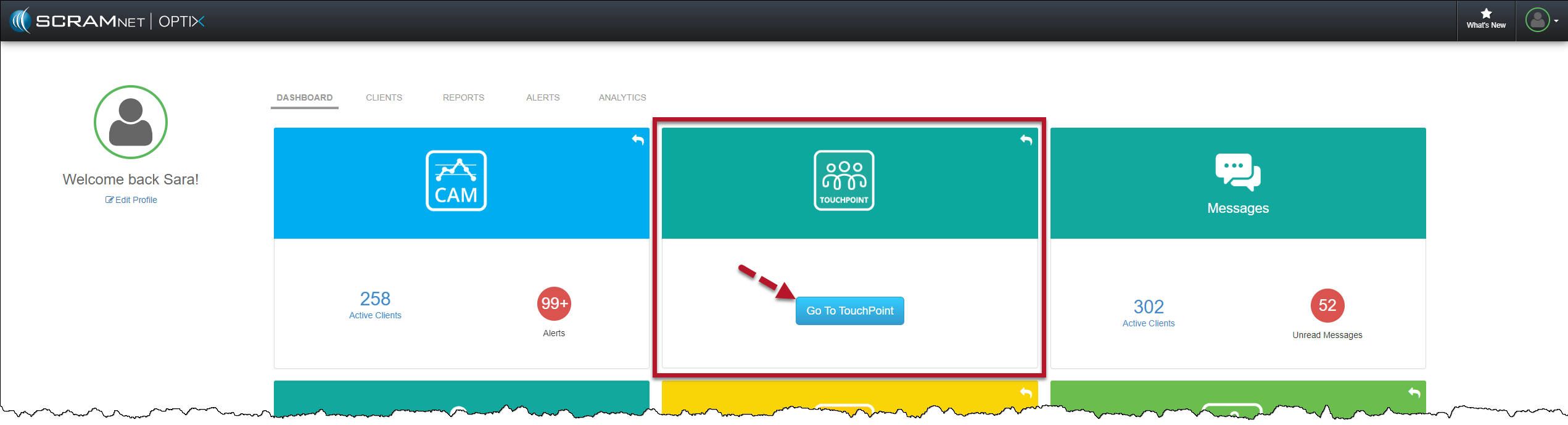 - On the Optix Dashboard, locate the TouchPoint tile and select the Go To TouchPoint button.