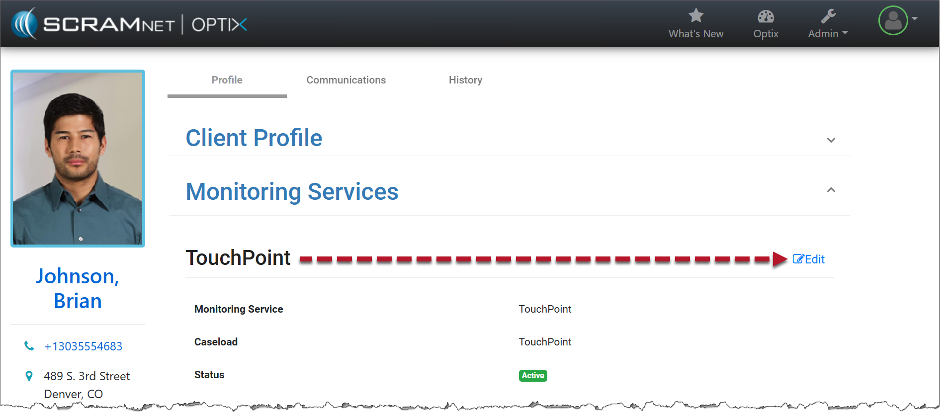 - Under the Monitoring Services section, select the Edit hyperlink to the right of the TouchPoint heading.
