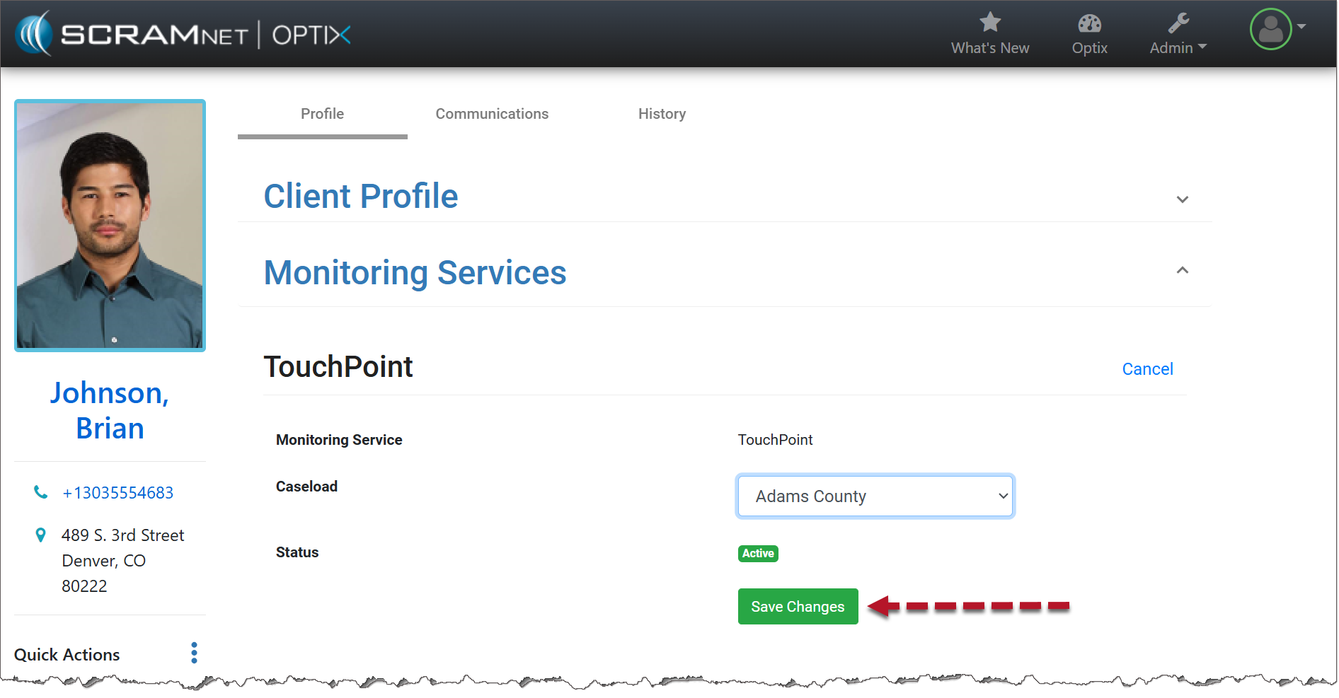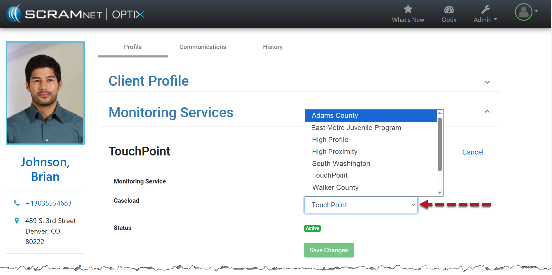 Once a TouchPoint client has been added into the system, it may be necessary to transfer the client to a new TouchPoint caseload for monitoring.