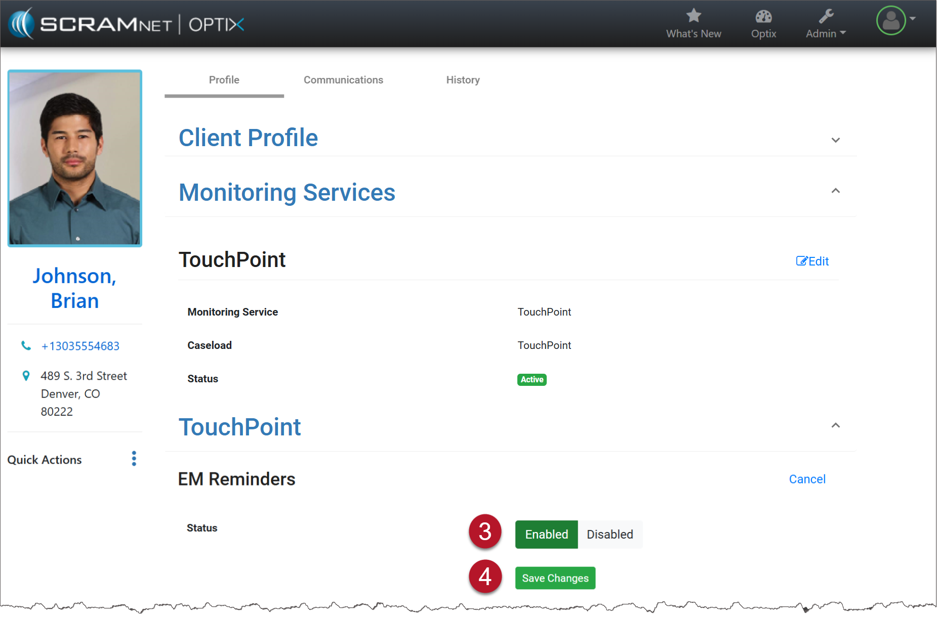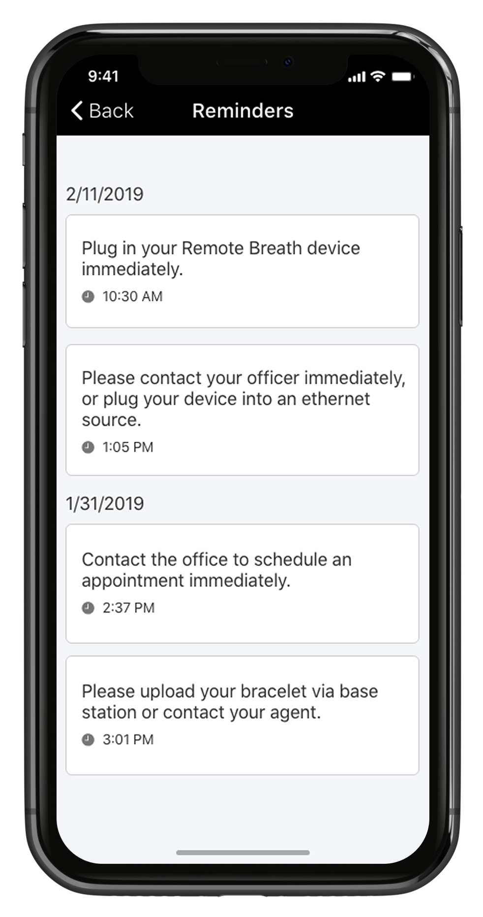 EM Reminders are push notifications sent to clients being monitored on one of SCRAM Systems’ electronic monitoring devices. These reminders are triggered by events generated in SCRAMNET or SCRAMNET GPS. The EM reminders consist of generalized device communication and charging reminders with instructions for the client to follow.