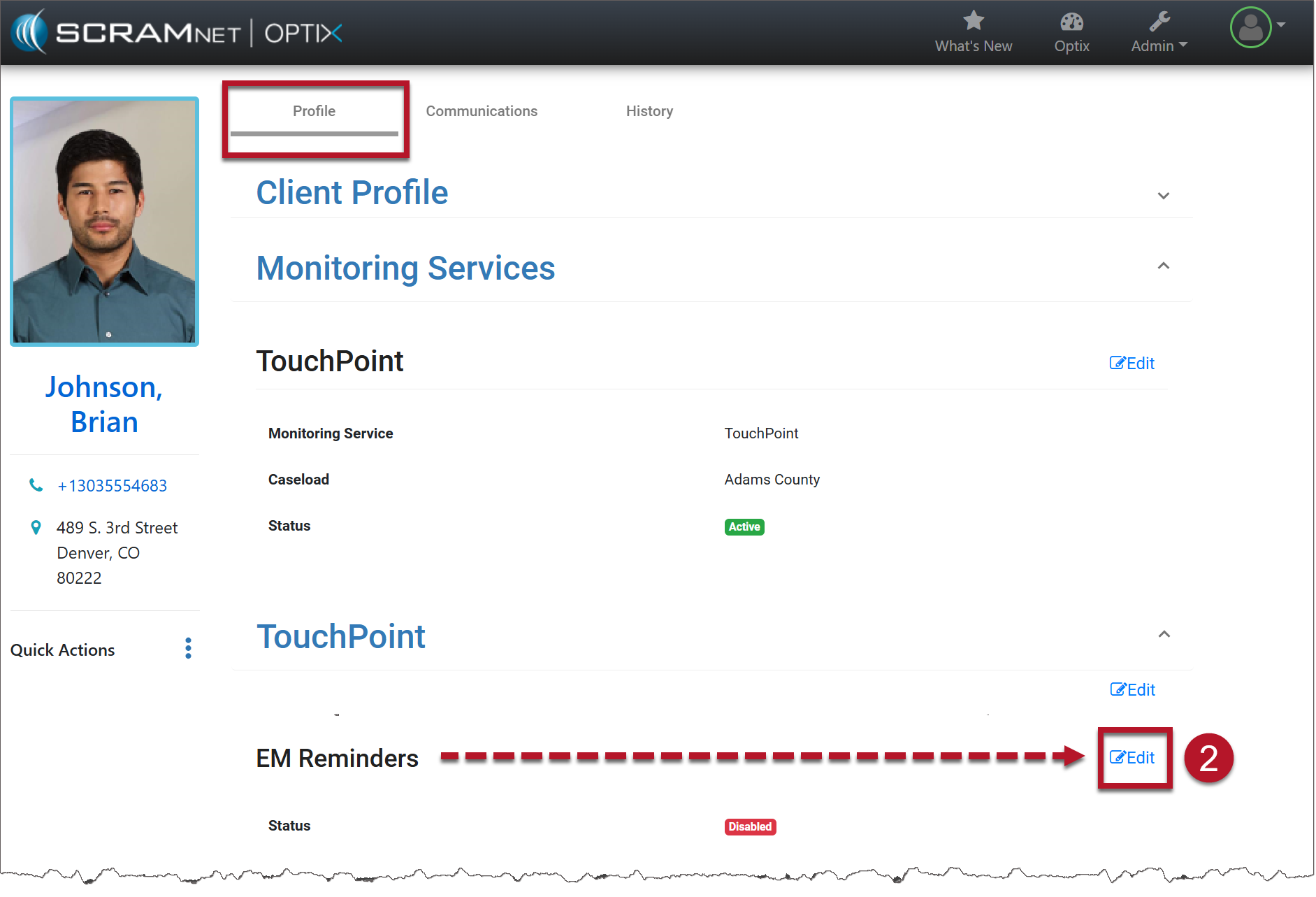 - Locate the Edit link in the EM Reminders section.