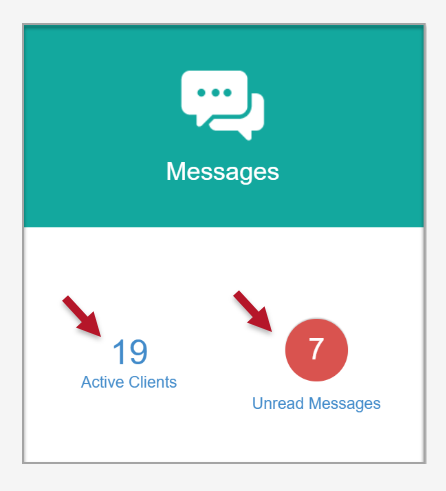 - This tile will display the number of Active Clients enabled for Client Messaging and the number of Unread Messages that need your attention.