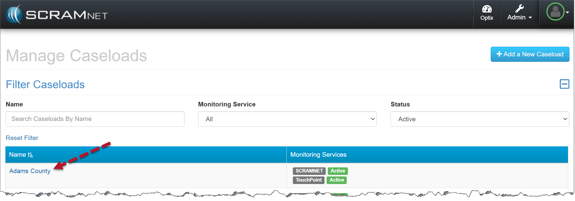 - Select the desired Caseload.