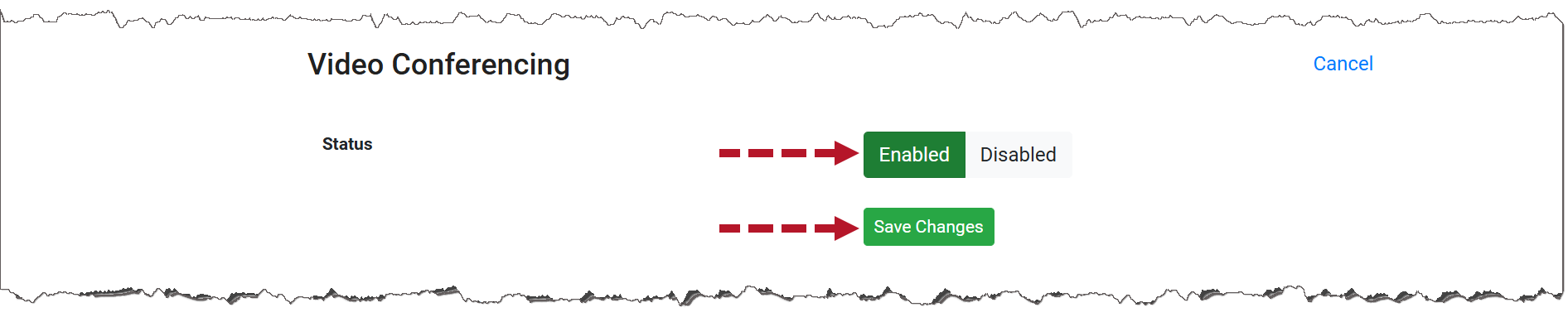 - On the Monitoring Service Detail page, select the checkbox next to Video Conferencing; then select the Save Changes button.
