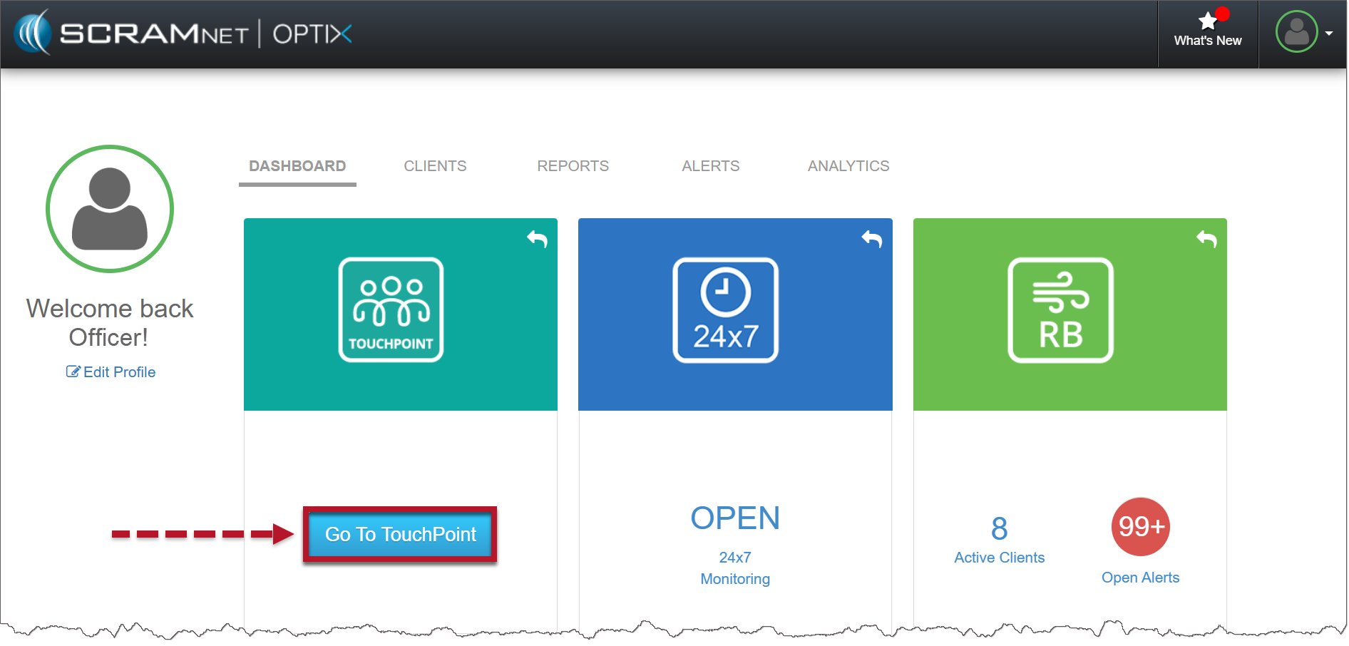 - From the Optix Dashboard, locate the TouchPoint tile, and then select the Go to TouchPoint button.