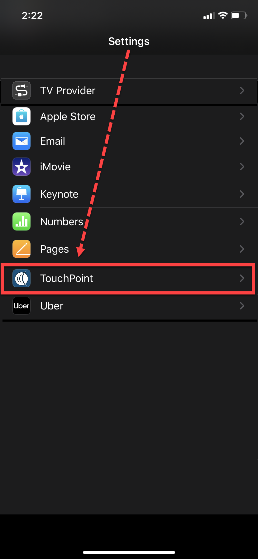 - Select the TouchPoint icon (you may have to scroll to locate the icon).