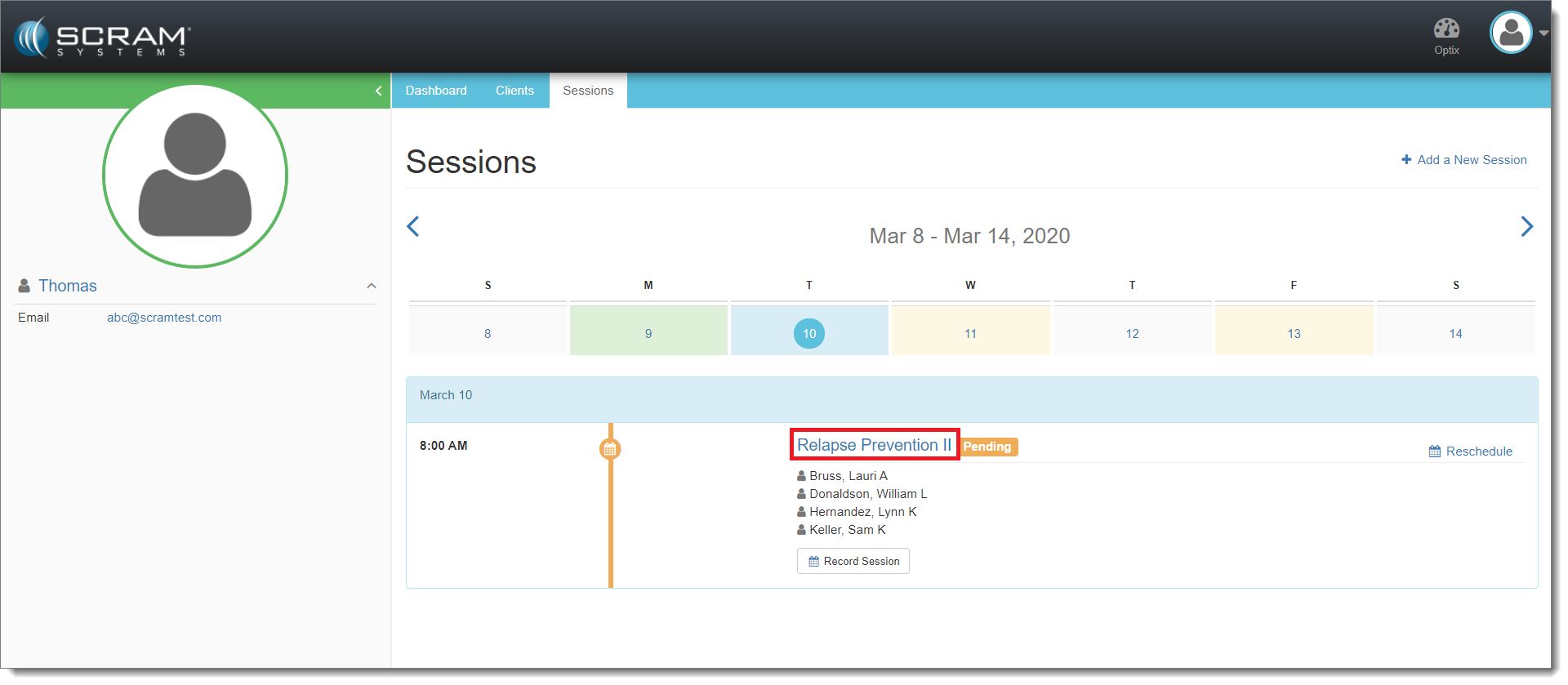If a session series requires a change, locate the session series in the Sessions calendar and open the series by selecting the session’s name: