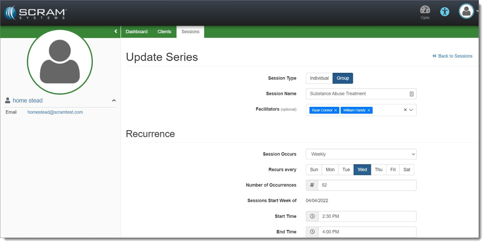 Make changes to your session series by adjusting the values in the appropriate fields: