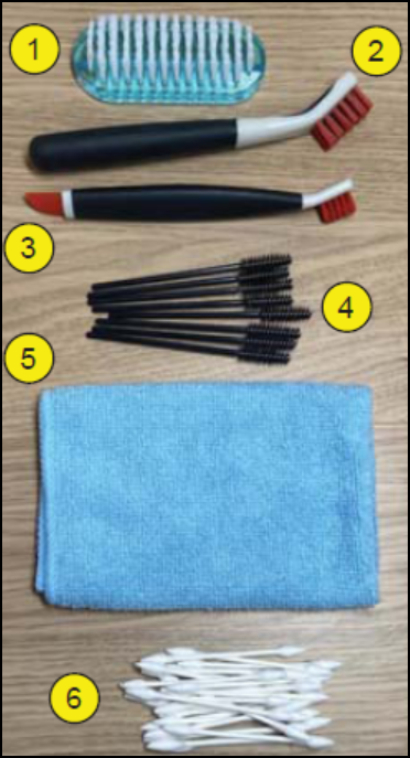 - Use a precision-tip cotton swab to clean and dry any small metal components (screw grommets, buckle contacts, and pogo pins).