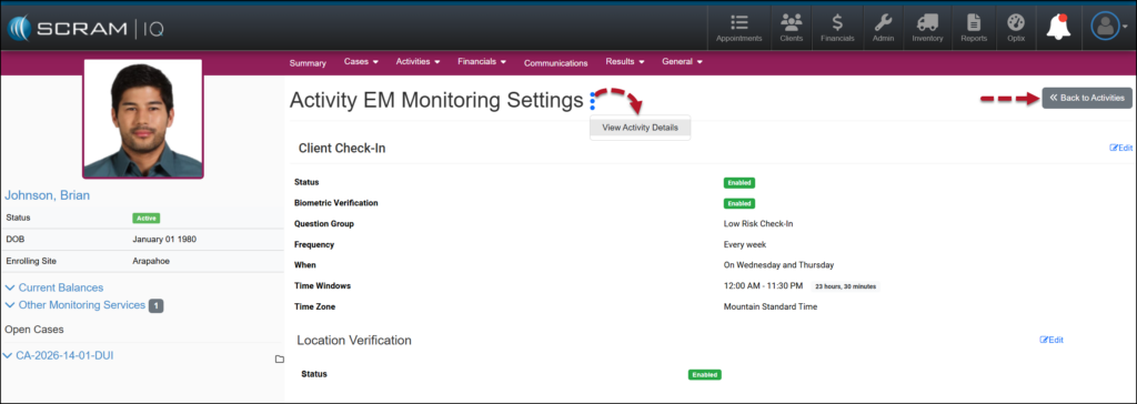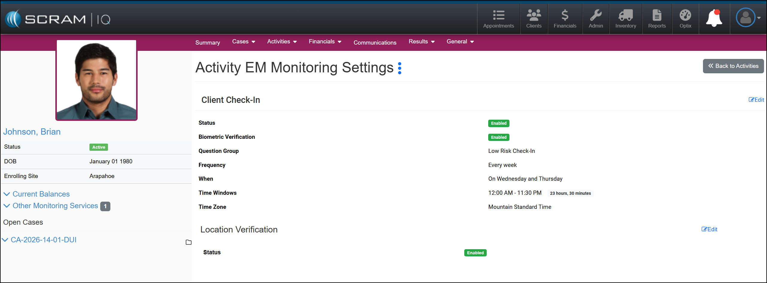 - Activity Electronic Monitoring (EM) Monitoring Settings