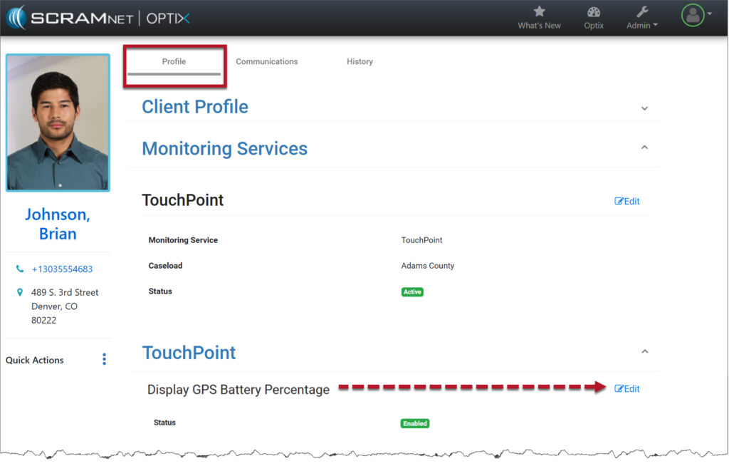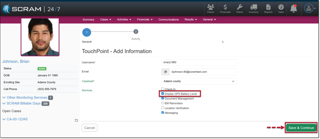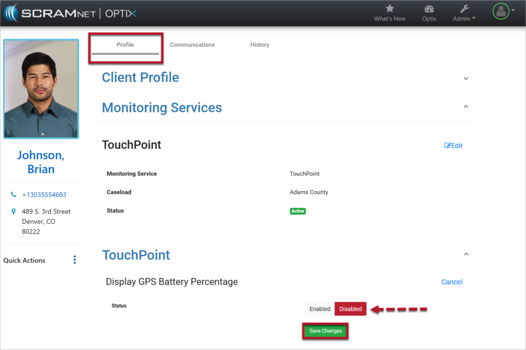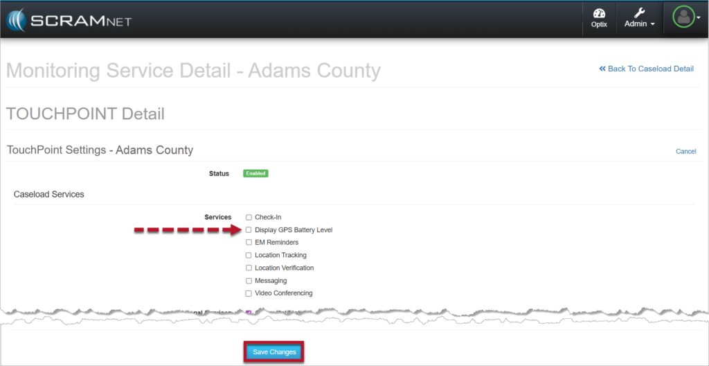 On February 4, 2026, SCRAM Systems will release an update that allows providers to control whether the GPS battery level is visible to clients in the TouchPoint Mobile app. This setting can be managed in SCRAM Optix or 24×7.