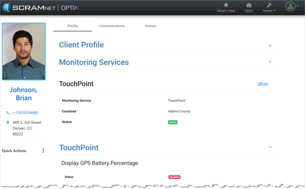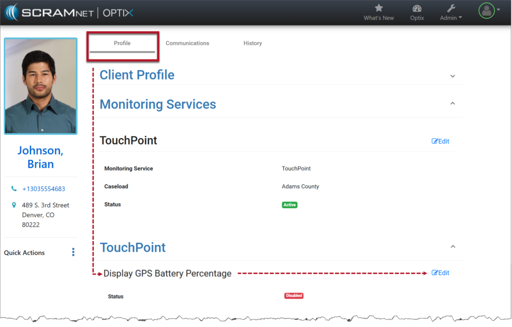 | At this time, you must access the client’s SCRAMNET GPS profile page by selecting their name hyperlink in the Other Monitoring Services section in the sidebar. It is imperative that you: