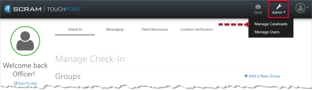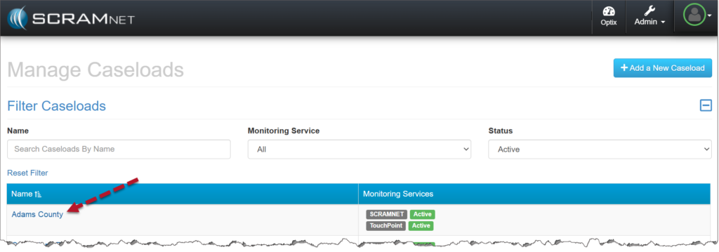- Select the Admin tab from the top toolbar and then the Manage Caseloads option.