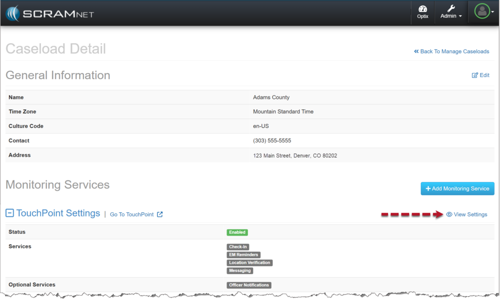 - From the Caseload Detail page, select the View Settings hyperlink.