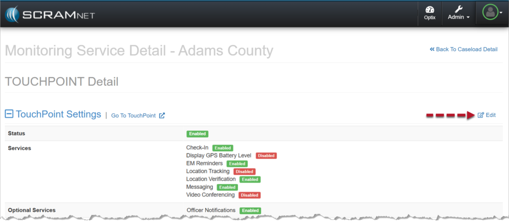 - You may elect to assign a SCRAM GPS bracelet and Beacon at this time by selecting the checkboxes next to the appropriate selections in the Optional Settings section.