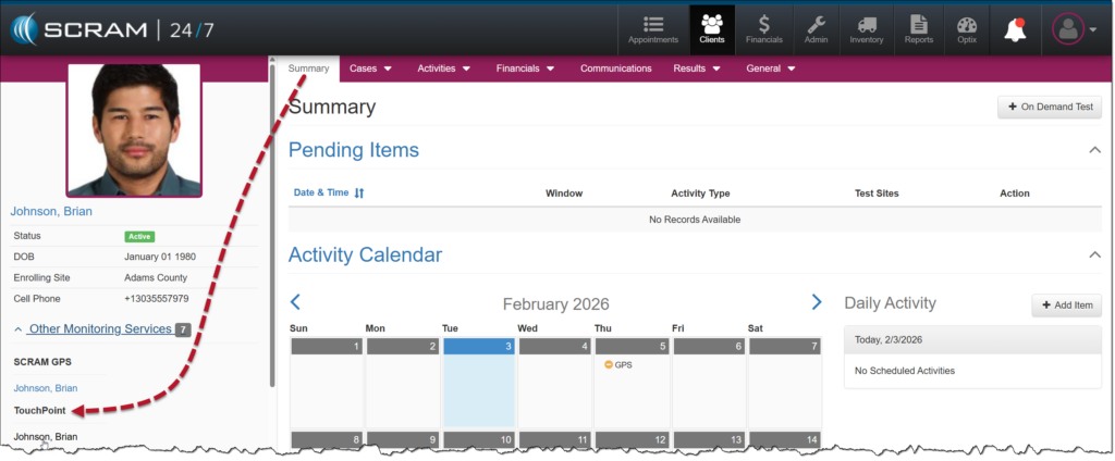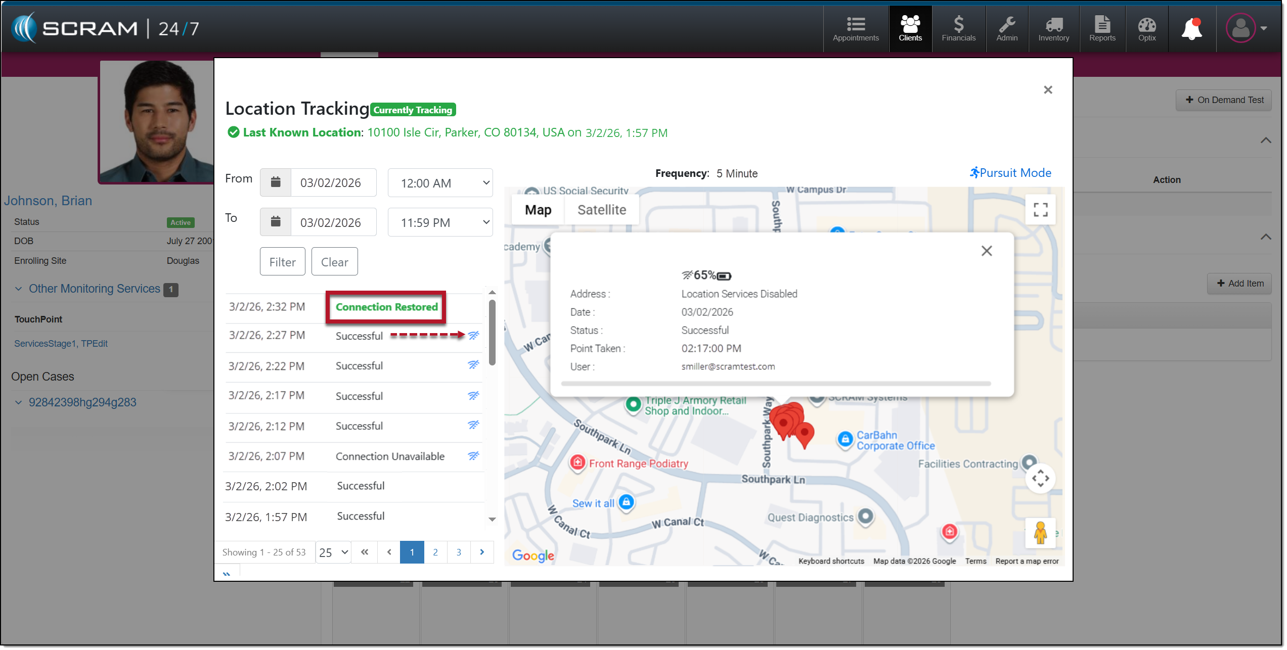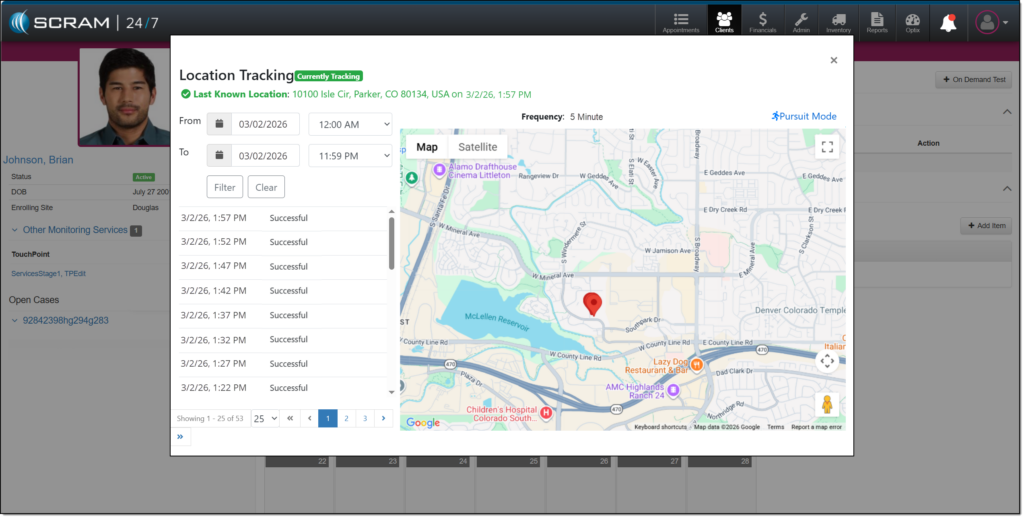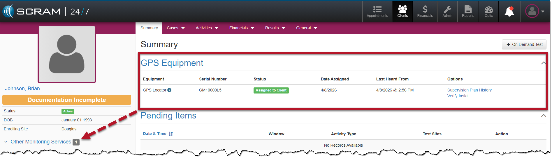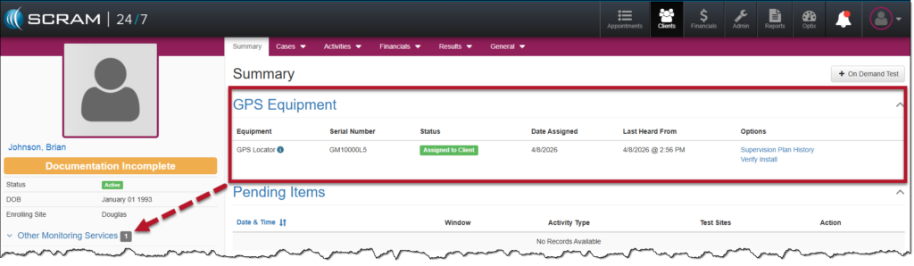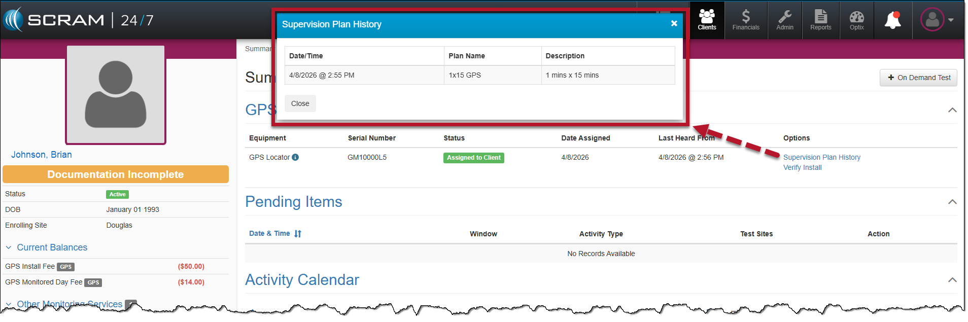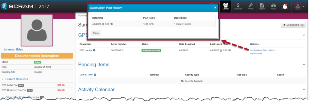 - View SCRAM GPS Supervision History on the client’s Summary page.