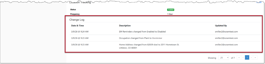 | Status Updates: Location Tracking status updates are tied to the client’s configured frequency. For example, location information is gathered and communicated every 5, 10, 15, 30, and 60 minutes. Any change in connectivity or location status will only be displayed at the sent interval. |